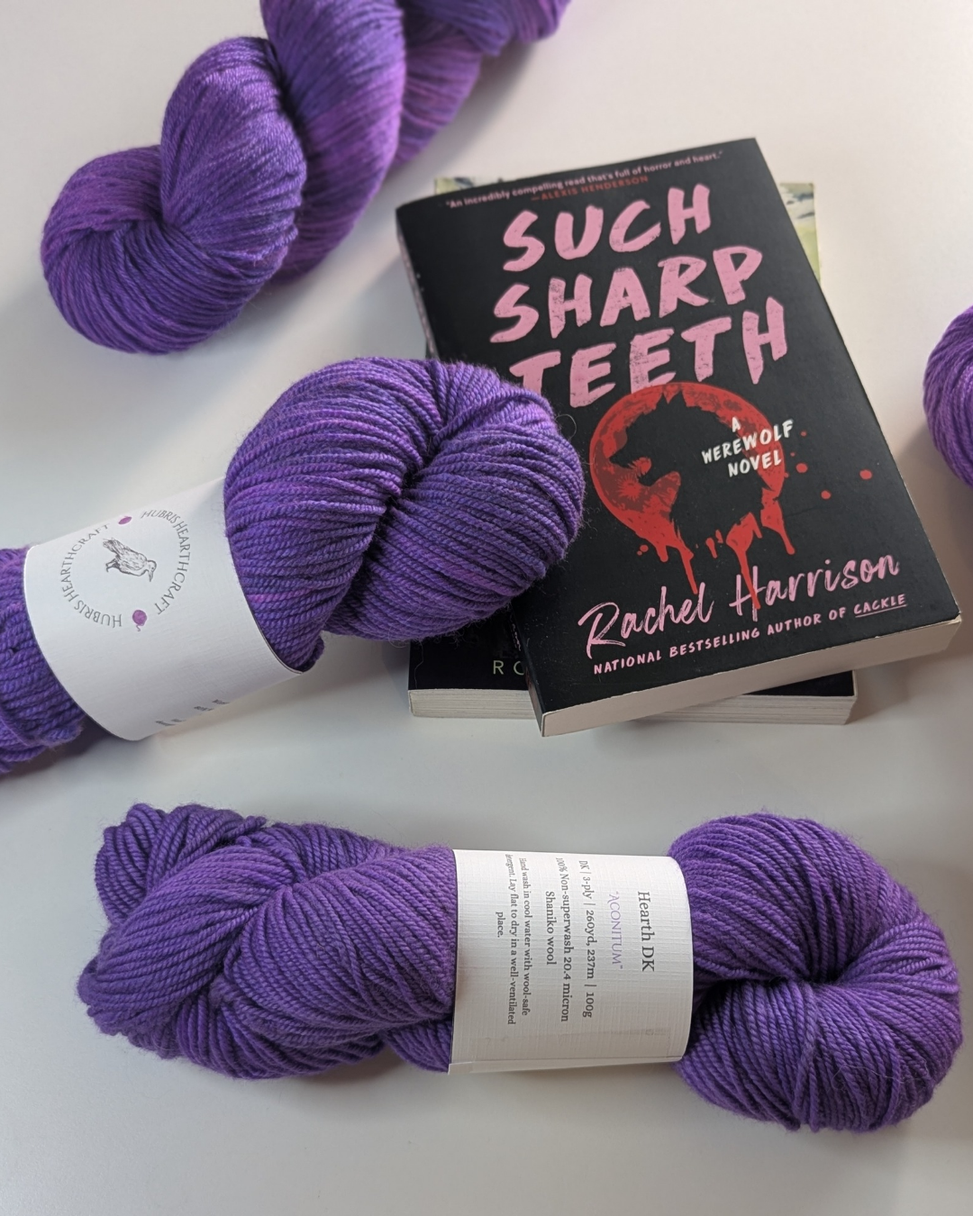 A vibrant, semi-solid mid-toned purple with flashes of fuchsia throughout. Meant to invoke wolfsbane petals in the early morning sunlight, when faeries drink dew and the sun and moon are both still in the sky. Dyed to order in the base of your choice.