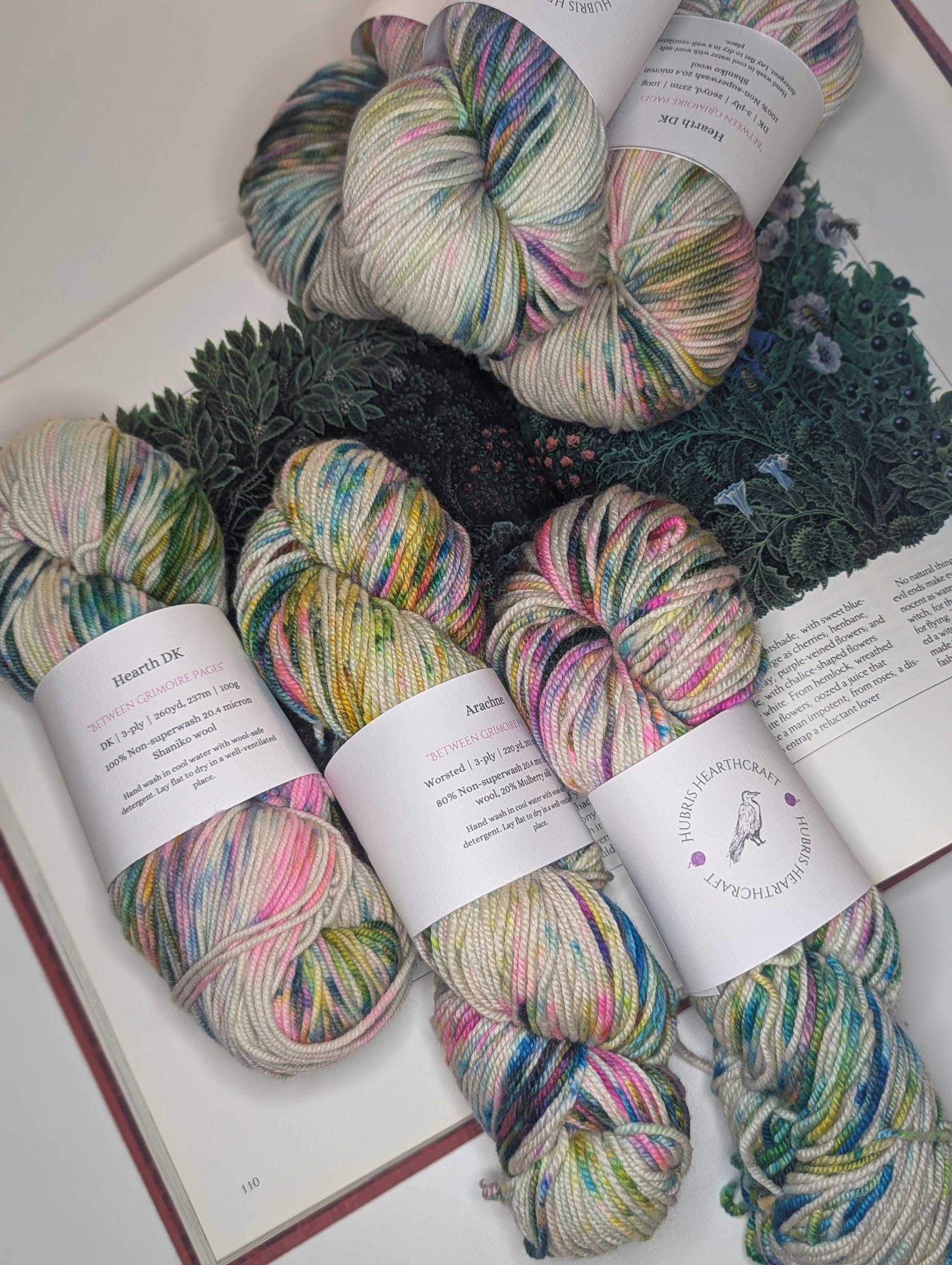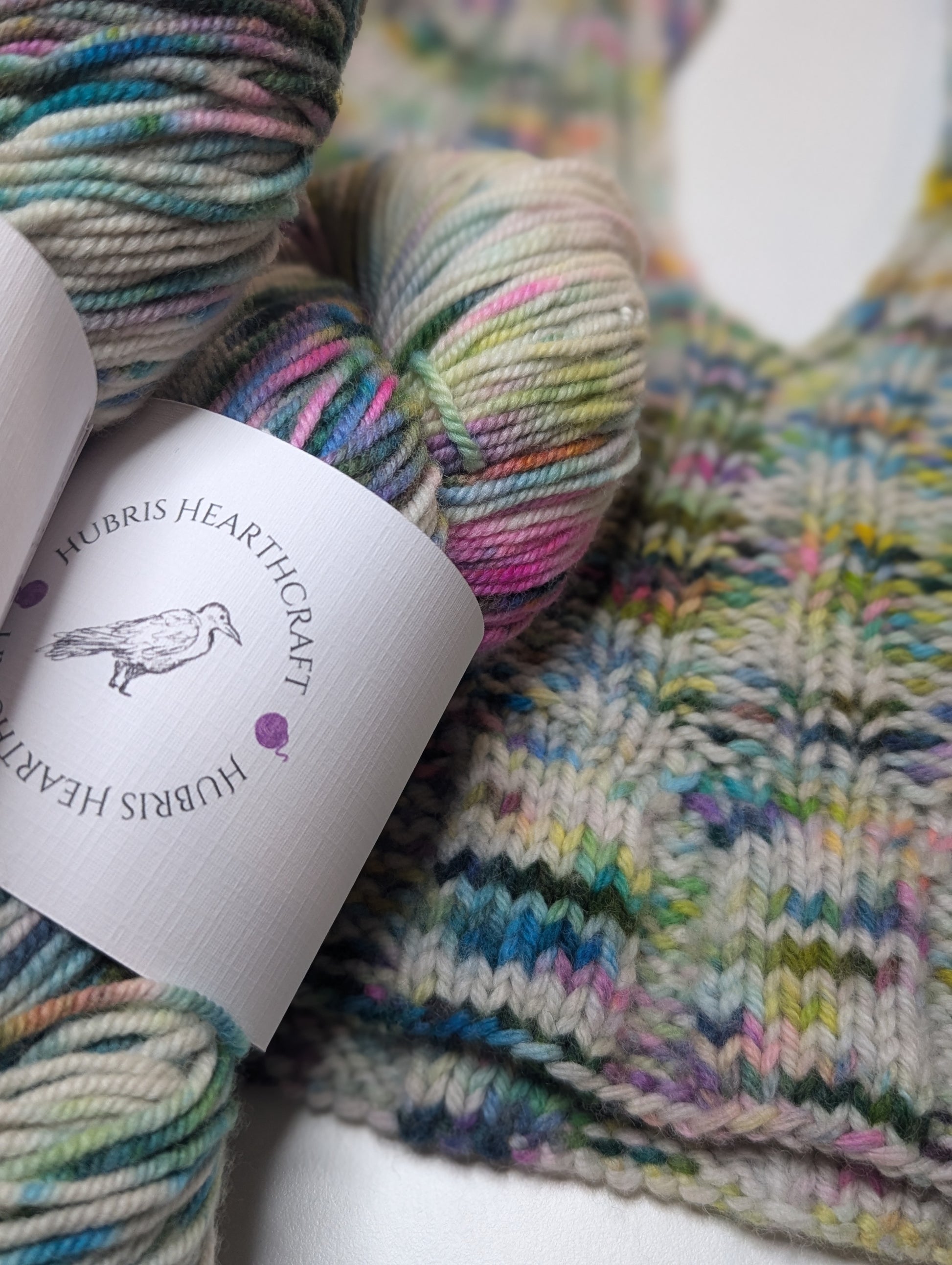 Dyed with areas of more and less speckling to mimic pressed flowers on a page when worked up. This rainbow-speckled delight is a true "bright neutral" on its own, but pairs beautifully with most other solids due to its bright and speckle-y nature.