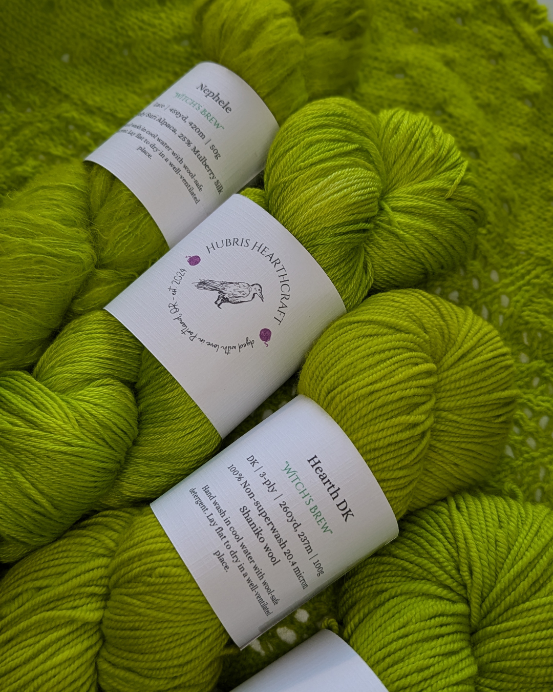 Witch's Brew is a semi-solid acidic yellow-green. Made from the lovely green goop you find inside a witch's cauldron. Dyed to order in the base of your choice.